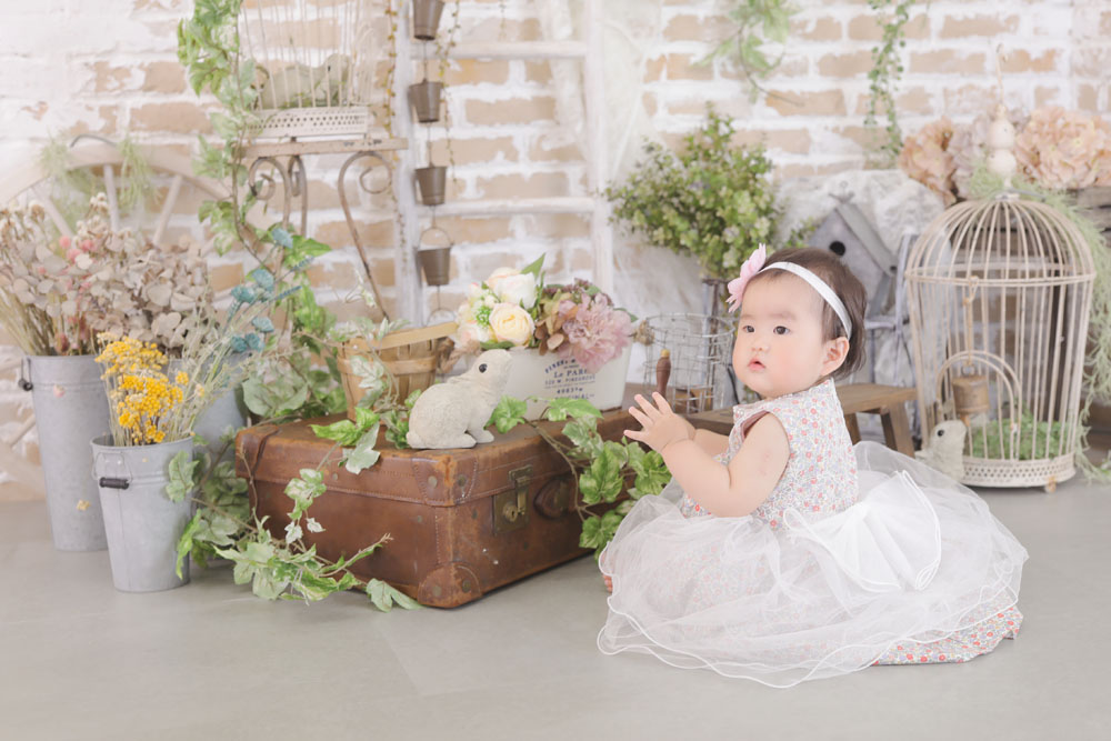 こんにちは!箱崎A店のけいです♪ 本日、最後のご紹介は1歳誕生記念のひまりちゃんです☆ 私服のワンピースとお店の衣装での撮影でした! 最初は怖くて…