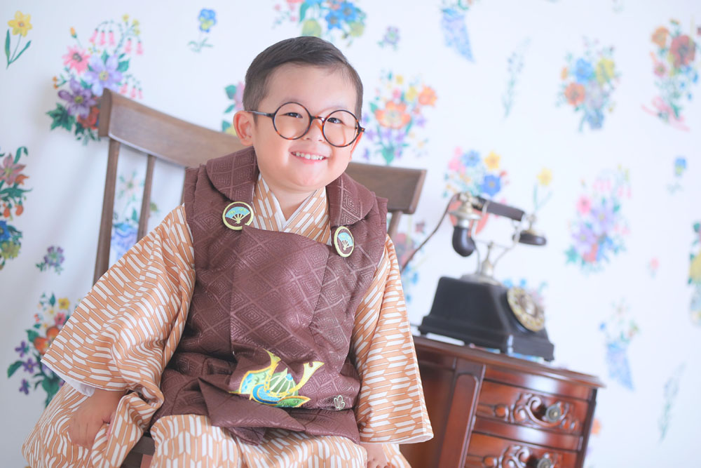 こんにちは!箱崎B店のかいです♪ 本日、最後のご紹介は3歳七五三記念の男の子です☆ ママさんが選んでくれたお着物を着ての撮影でした♪ 本日がお誕生…
