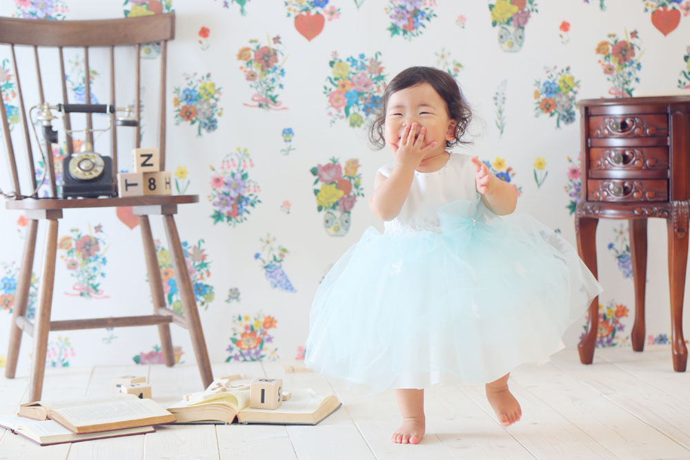 こんにちは!箱崎A店のけいです♪ 本日、最初のご紹介は1歳誕生記念の女の子です☆ お持ち込みのワンピースとお店の衣装での撮影でした! お店に着いた…