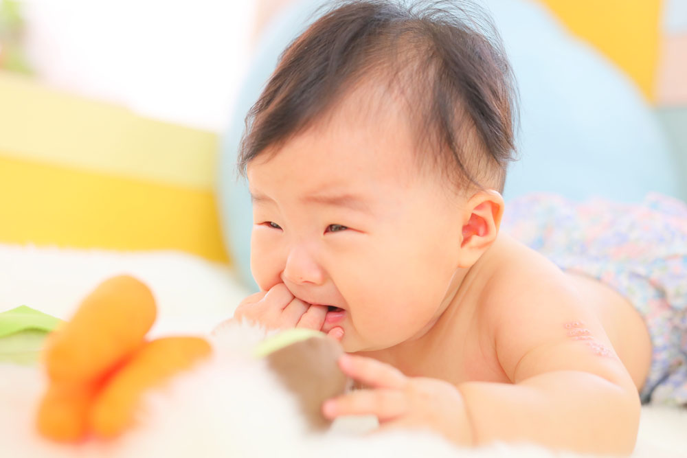 こんにちは!大濠店のひらです♪ 本日最後のご紹介は百日記念でお越しの女の子です✿ とっても眠たそうな表情でお店に着いたモデルさん^^ お着物の撮影…