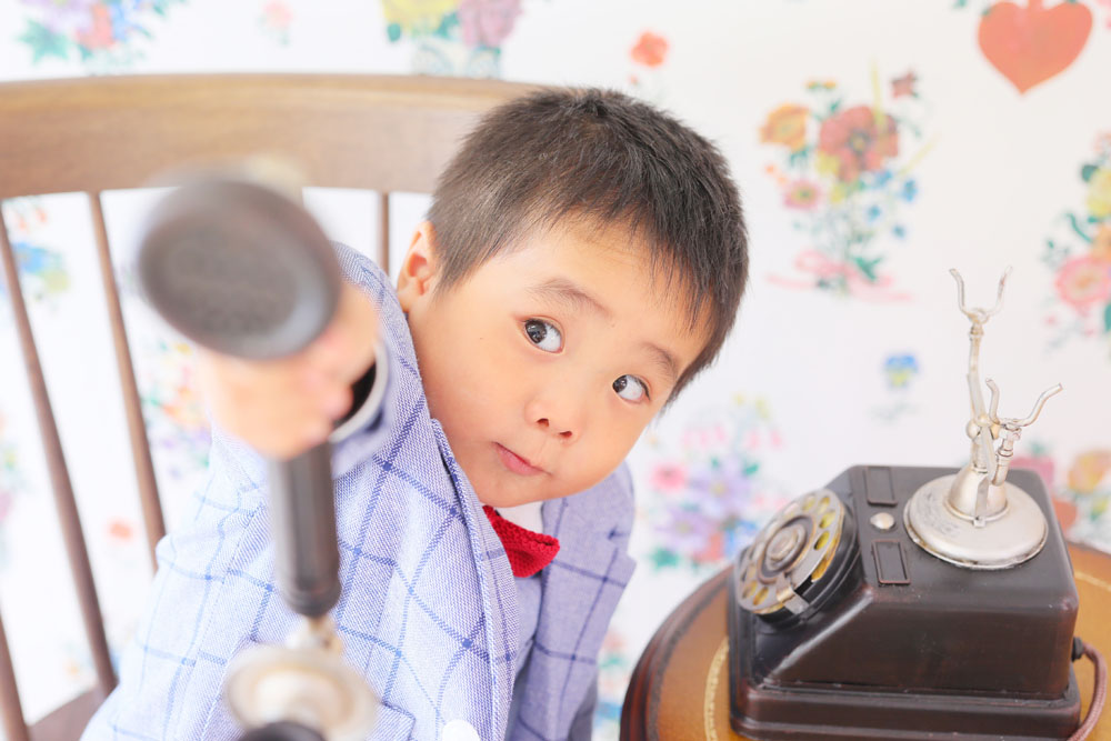 こんにちは!大濠店のひらです♪ 本日最初のご紹介は5歳七五三記念でお越しの男の子です☆ 着慣れないお着物の撮影で少し疲れたモデルさん^^ 遊びたい…