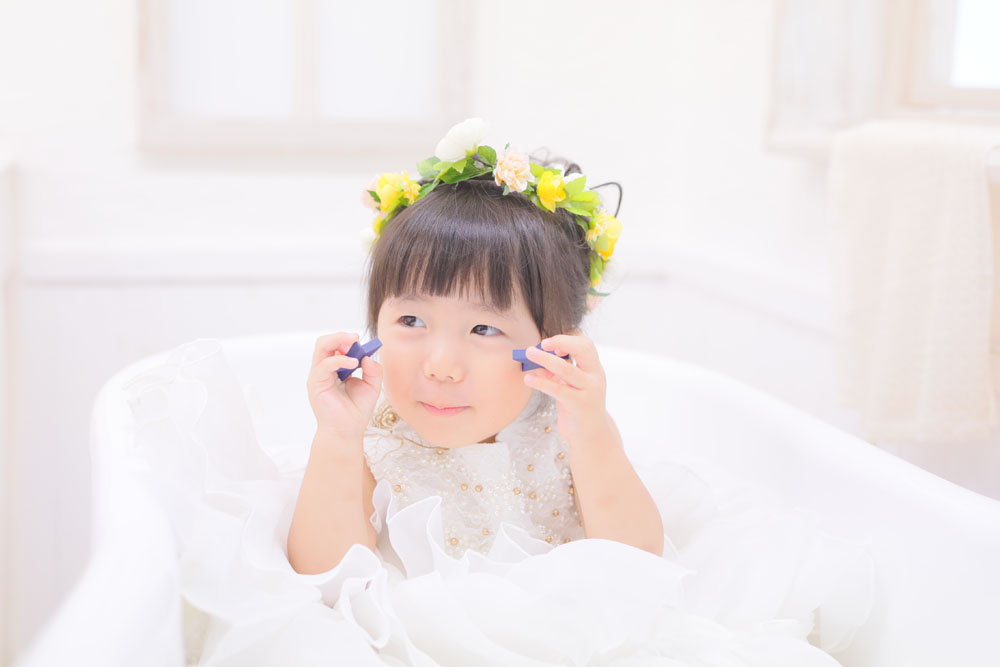 こんにちは!箱崎B店のかいです♪ 本日、最後のご紹介は3歳七五三記念の女の子です🌸 最初は少し緊張気味のモデルさん^^ けれど、時間がたつにつれて…