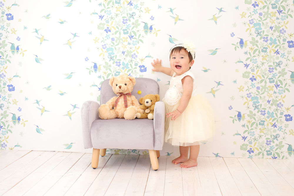 こんにちは!箱崎B店のかいです♪ 本日、最後のご紹介は1歳バースデー記念のみずきちゃんです🌸 お持ち込みのお洋服とお店の衣装での撮影でした♪ 最初…