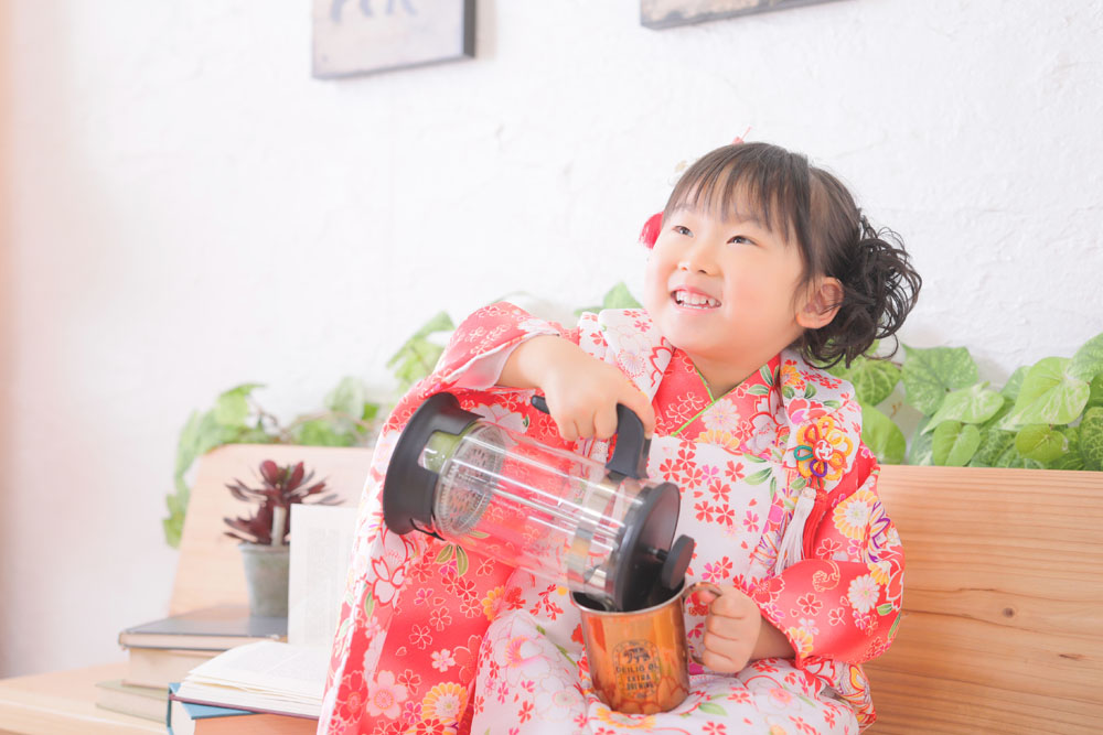 こんにちは!箱崎B店のかいです♪ 本日、最初のご紹介は3歳七五三記念の女の子です🌸 自分で選んだお着物とドレスを着ての撮影でした♪ 最初は少し緊張…