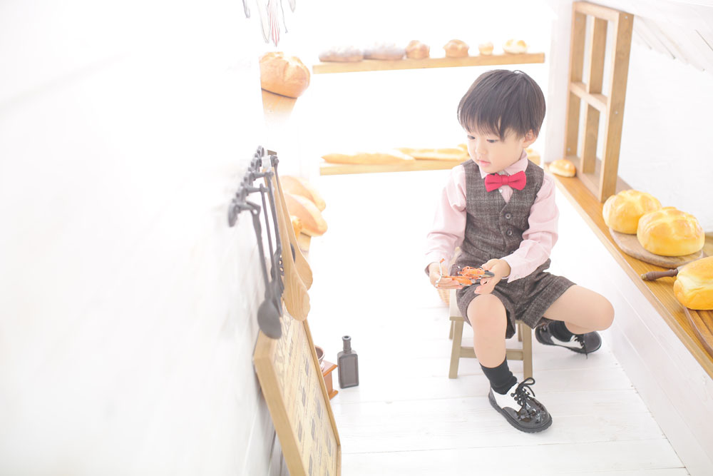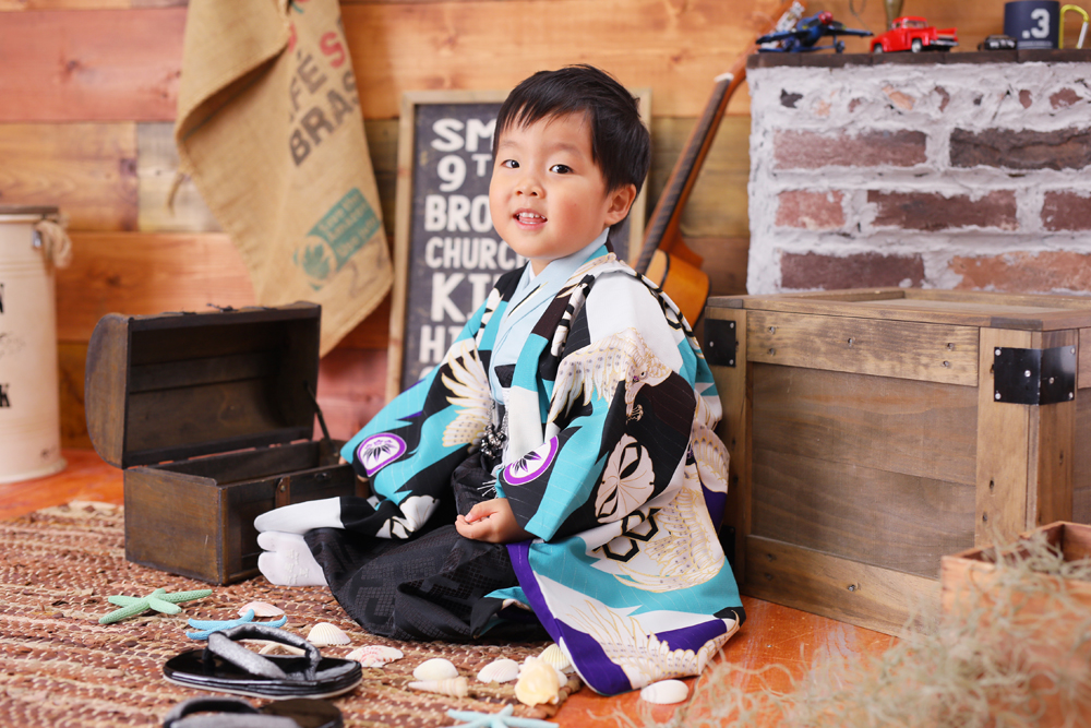 こんにちは!大濠店のひらです♪ 本日最後のご紹介は3歳七五三記念でお越しの男の子です☆ とってもドキドキ緊張していたモデルさん^^ 最初はお話する…