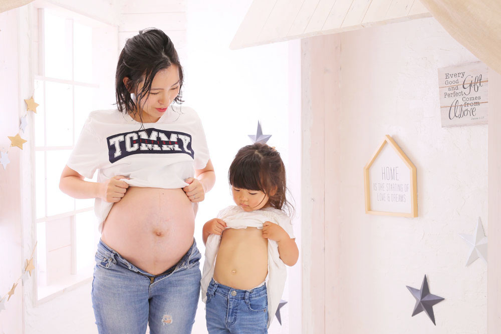 こんにちは!大濠店のひらです♪ 本日はマタニティイベント開催日です☆ 最初のご紹介は吉貝さまです! Tシャツのリンクコーデで来てくれました! お…