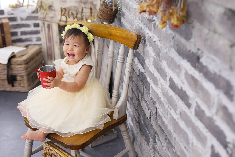 こんにちは!大濠店のひらです♪ 本日最初のご紹介は1歳誕生記念でお越しのゆずのちゃんです✿ お持ち込みとお店のお衣装での撮影でした! とってもご機…