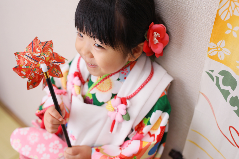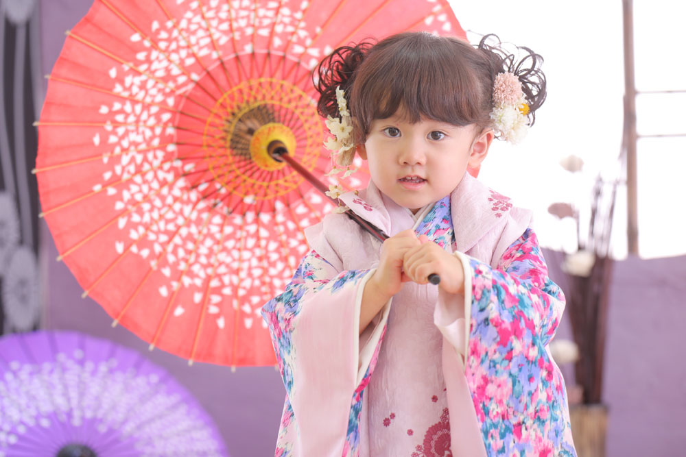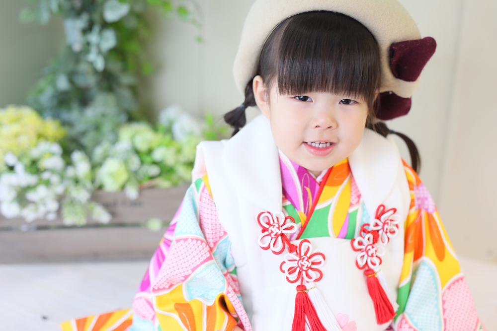 こんにちは!箱崎A店のぴーです! 本日最後のご紹介は、3歳の七五三記念でご来店のゆずきちゃんです☆ ママさんの選んで下さったお衣装2着と、お持ち込みの髪…