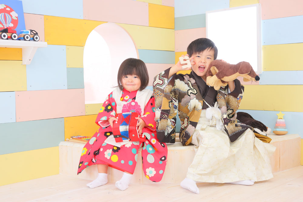 ▽5歳・3歳七五三記念の男の子と女の子▽