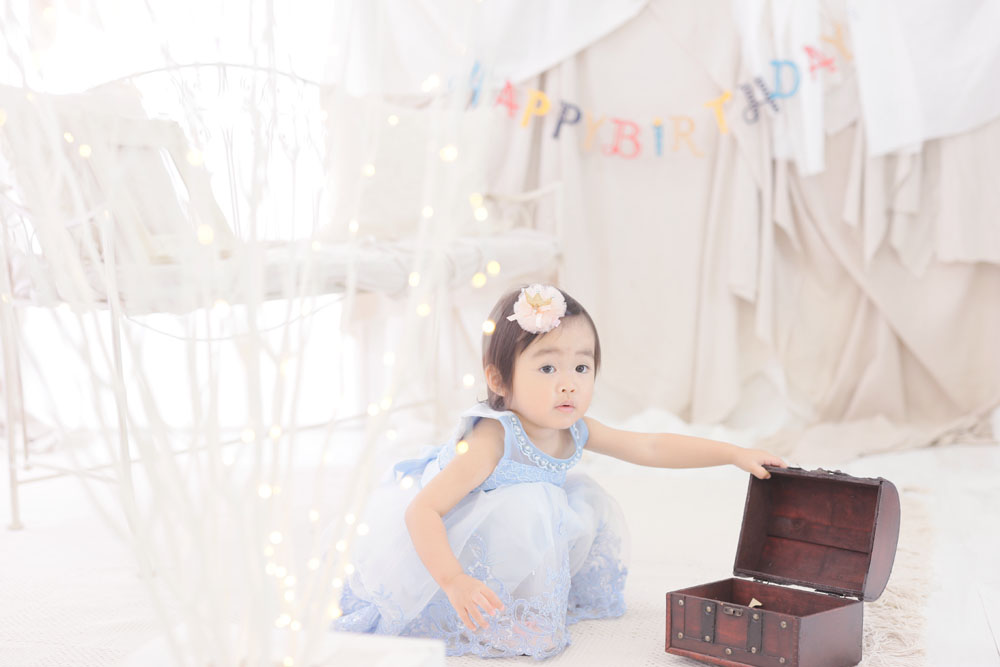 こんにちは!大濠店のぴーです♪ 続いてのご紹介は、1歳お誕生日記念でご来店のかほちゃんです☆ お持ち込みのお衣装2着を含めて3着での撮影でした! …