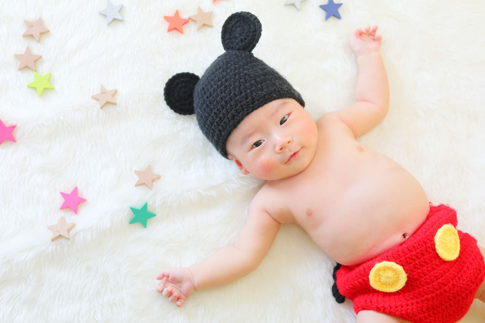 こんにちは!箱崎B店のかいです♪ 本日、続いてのご紹介はハーフバースデー記念のはるきくんです☆ お持ち込みの可愛らしいミッキーとミニーのぬいぐる…