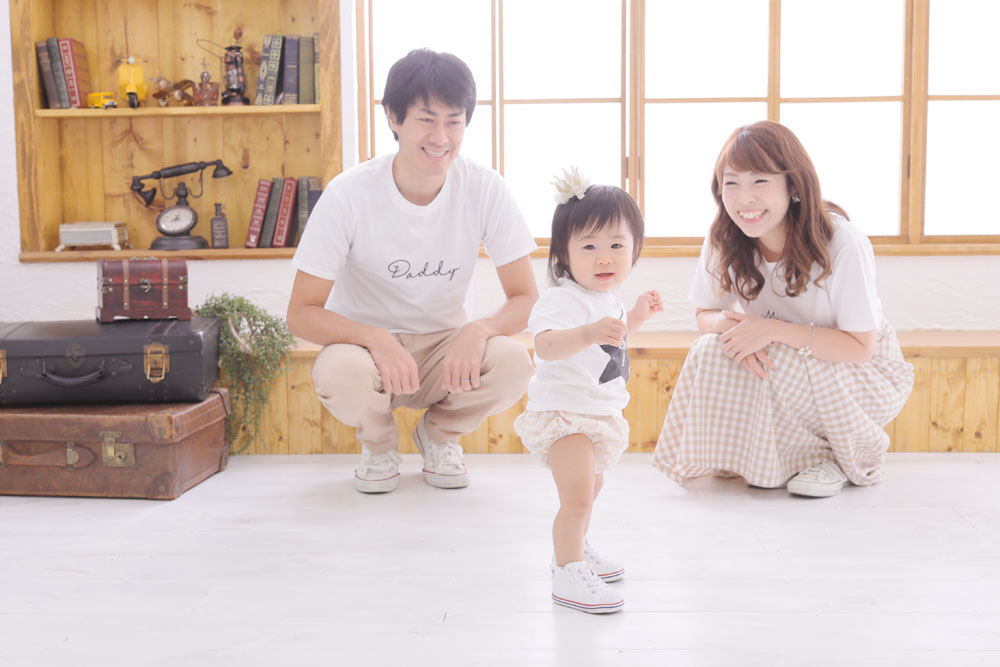 こんにちは!箱崎A店のけいです♪ 本日、最初のご紹介は1歳誕生記念のえまちゃんです☆ お持ち込みの衣装とお店の衣装での撮影でした! 撮影用の小物も…