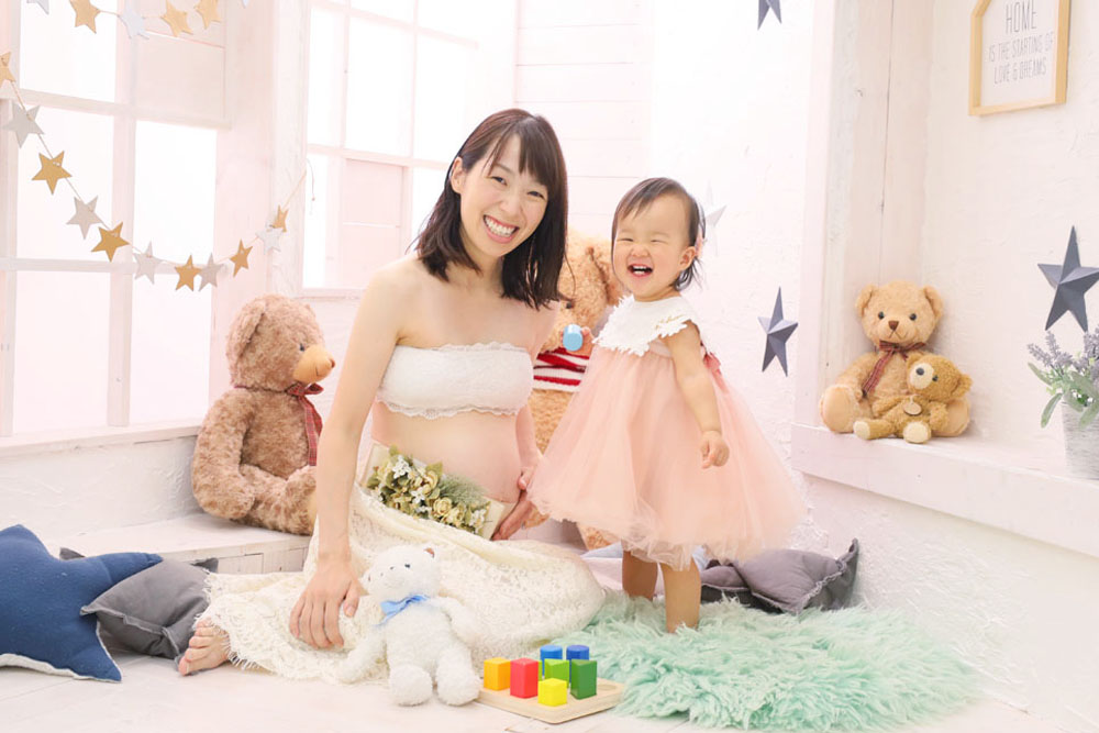 こんにちは!大濠店のぴーです♪ 続いてのご紹介は、マタニティ撮影でご来店の立田さまです☆ パパさんと、お兄ちゃんのけんしんくん、こうまくんと一緒にきてく…