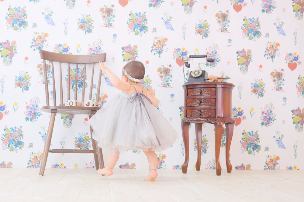 こんにちは!大濠店のひらです♪ 本日最初のご紹介は1歳誕生記念のりこちゃんです🌸 お持込みとお店のお衣装での撮影でした! とっても元気で歩くのが上…