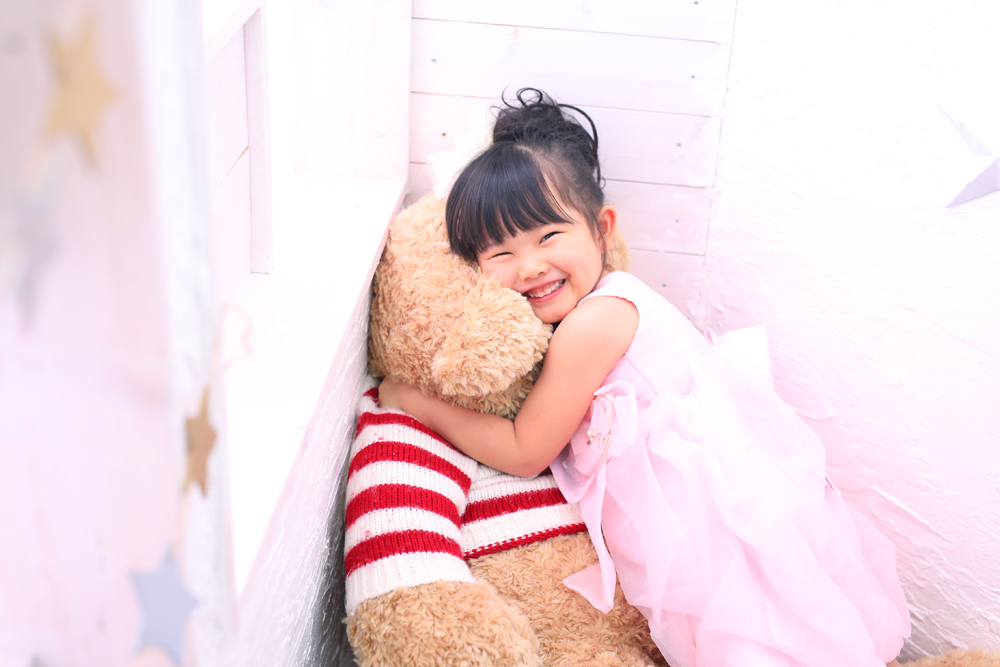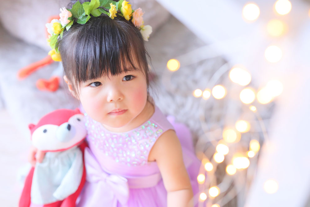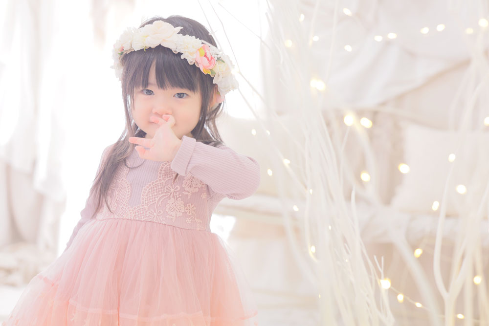 こんにちは!大濠店のひらです♪ 本日最後のご紹介は3歳七五三記念でお越しの女の子です🌸 とっても元気いっぱいなモデルさん^^ 撮影中はいろんなもの…