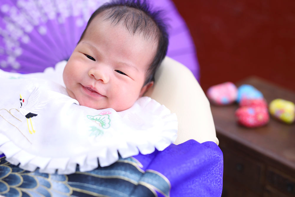 こんにちは!大濠店のひらです♪ 本日最後にご紹介はお宮参り記念でお越しのしんのすけくんです☆ お持込みとお店のお衣装での撮影でした! 素敵なお小物もた…