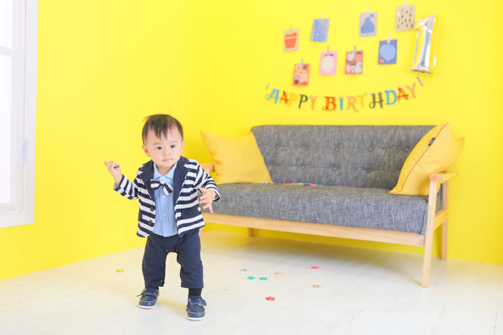こんにちは!大濠店のひらです♪ 本日最後のご紹介は1歳誕生記念でお越しの男の子です☆ みんなでリンクコーデで来てくれました! とってもご機嫌さんで…