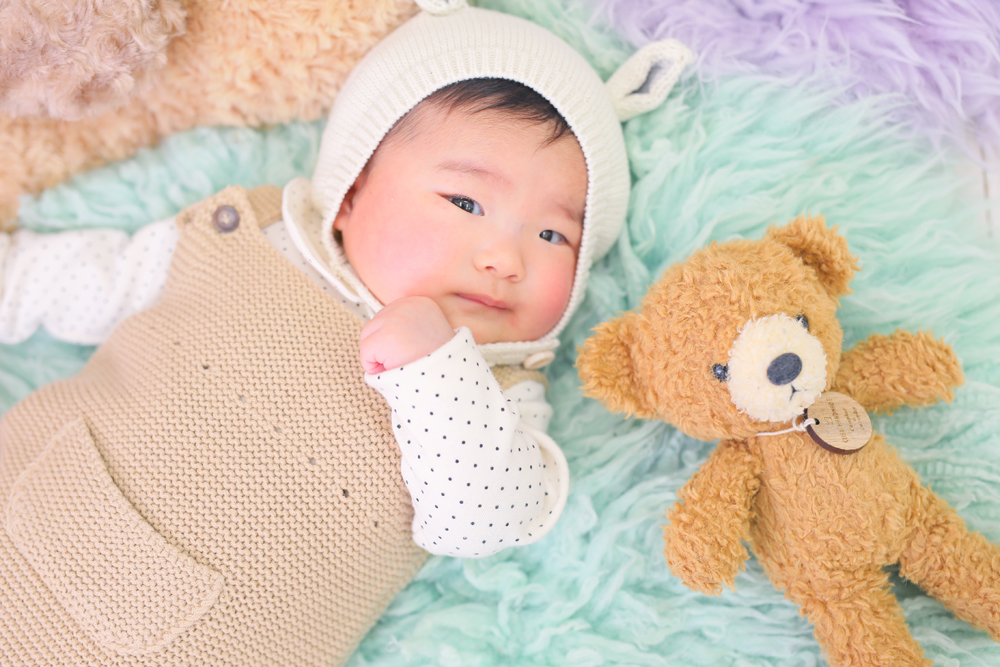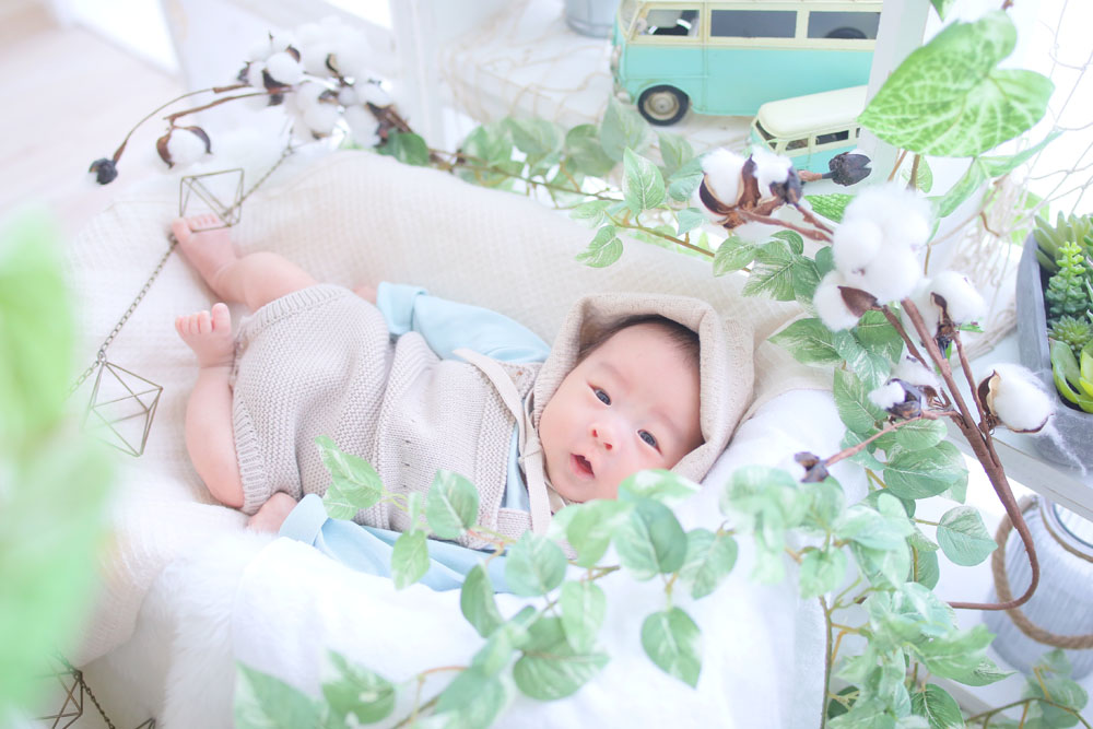 こんにちは!大濠店のひらです♪ 本日最初のご紹介は百日記念でお越しの女の子です🌸 お持込みとお店のお衣装での撮影でした! お店に着いた時から少し眠…