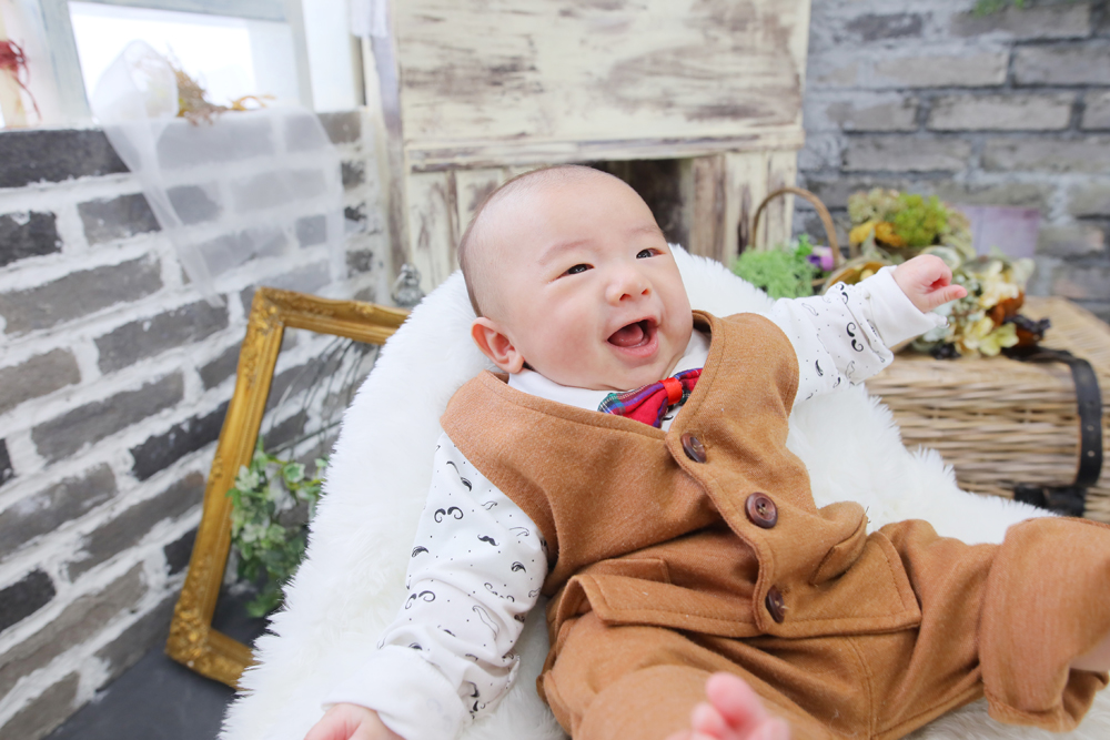 大濠店しょうです! 百日記念のみことちゃんのご紹介! とってもご機嫌で笑顔いっぱいのみことちゃん♪ うつ伏せも頑張ってくれて、可愛いお写真たくさん撮れ…
