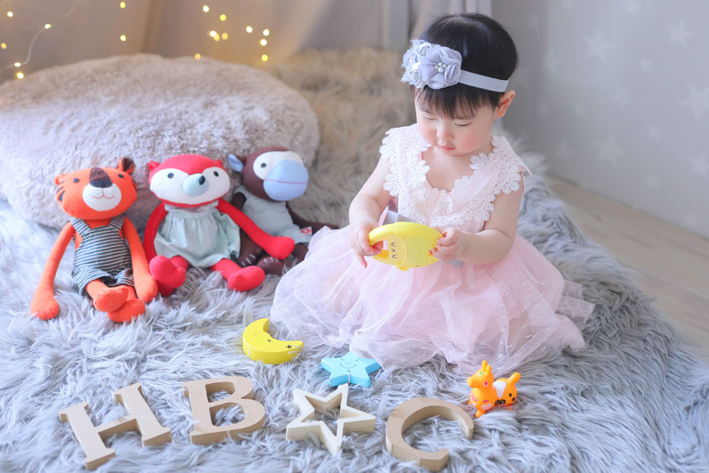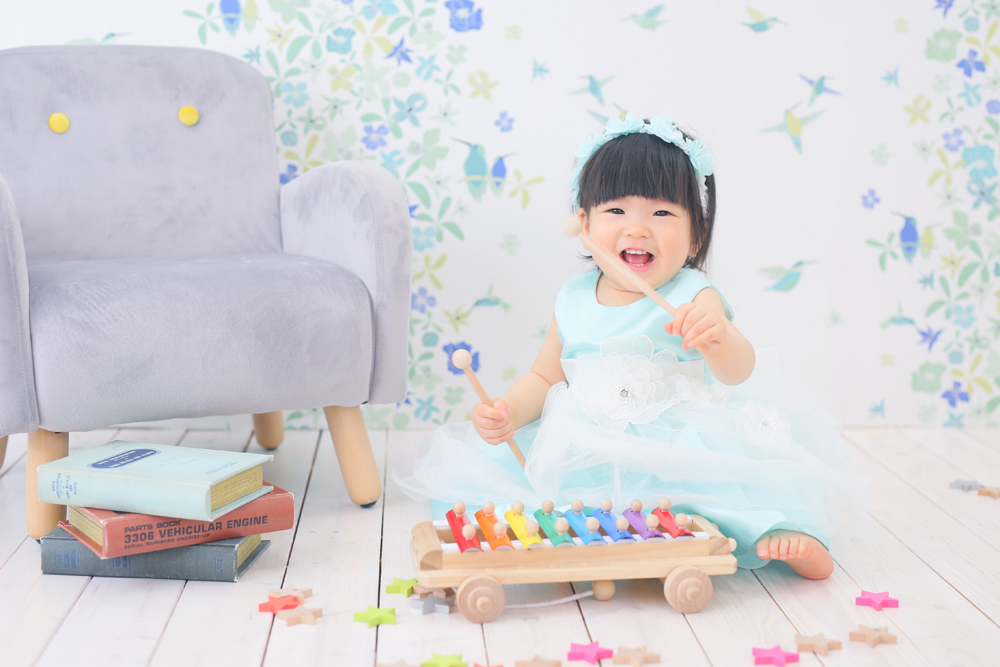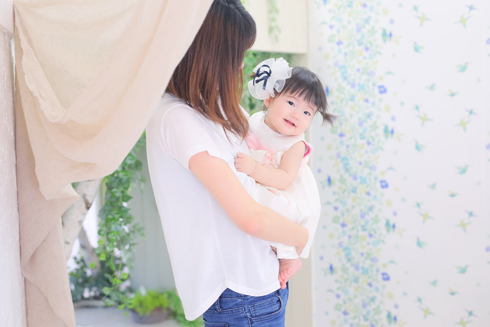 こんにちは!大濠店のひらです♪ 続いてのご紹介は1歳誕生記念でお越しのはるちゃんです🌸 お揃いのコーデでのご来店、お小物のお持込みありがとうございます^…