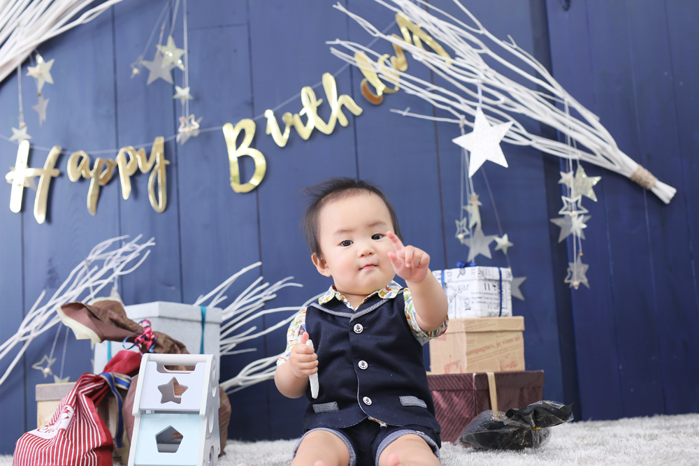 こんにちは!大濠店のひらです♪ 本日最後のご紹介は1歳誕生記念でお越しのりょうまくんです☆ お持込みとお店のお衣装での撮影でした! お気に入りのぬいぐ…