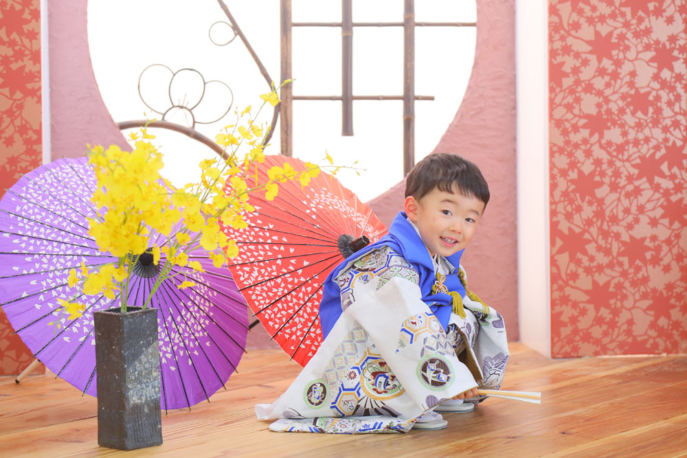 こんにちは!箱崎B店のかいです♪ 本日、最初のご紹介は5歳七五三記念の男の子です☆ お兄ちゃんも一緒に来てくれました♪ お着物とお持ち込みのお洋服…