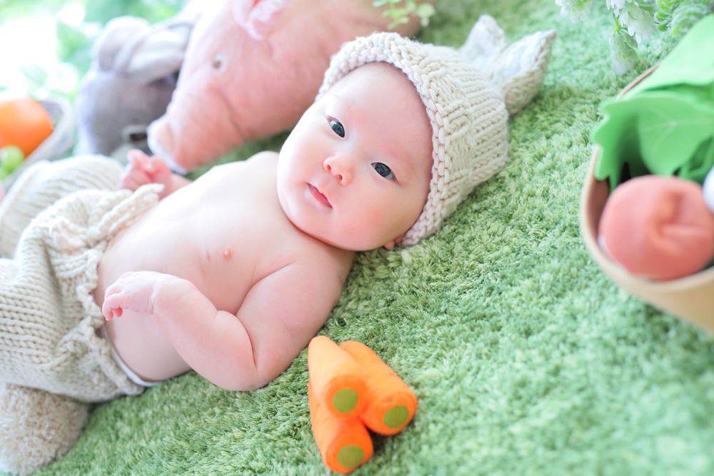 こんにちは!大濠店のひらです♪ 続いてのご紹介はお宮参り記念でお越しのさくらちゃんです🌸 撮影が始まると少し眠たそうにしていたさくらちゃん^^ 休…