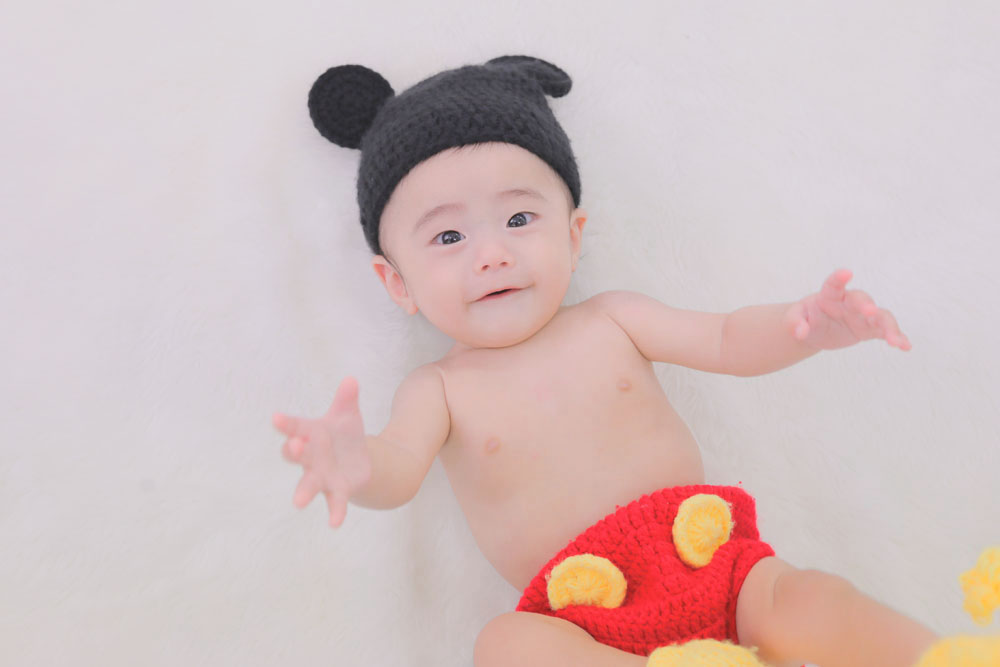 こんにちは! 箱崎A店のあーです♪ 本日、最初のご紹介はお宮参り記念の男の子です☆彡 少しご機嫌斜めだった男の子でしたが、 ミッキーさんの着…