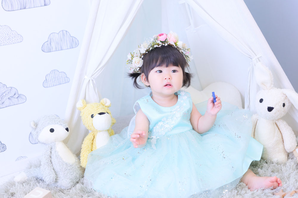 こんにちは!箱崎B店のけいです♪ 本日、最後のご紹介は1歳誕生記念のちさとちゃんです🌸 ママから離れたくなくて泣いちゃったちさとちゃん^^ おもち…