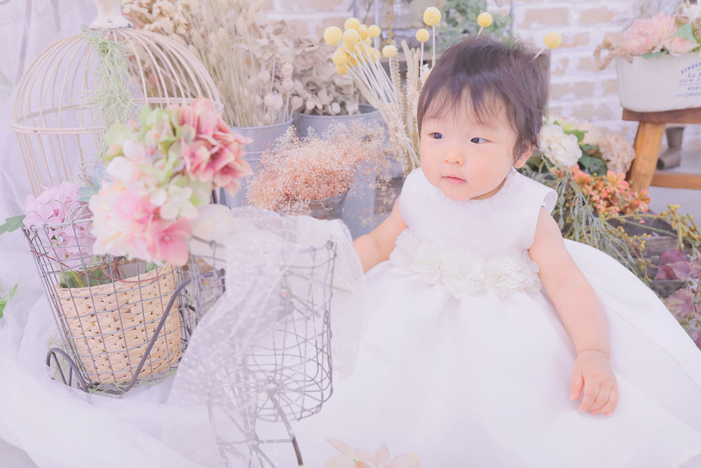 こんにちは!大濠店のひらです♪ 本日最初のご紹介は1歳誕生記念でお越しのしずくちゃんです🌸 みんなでリンクコーデしてきてくれました!! スタジオを…