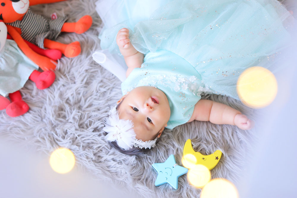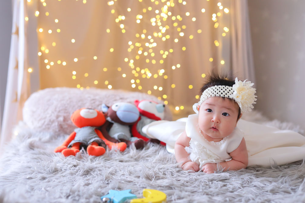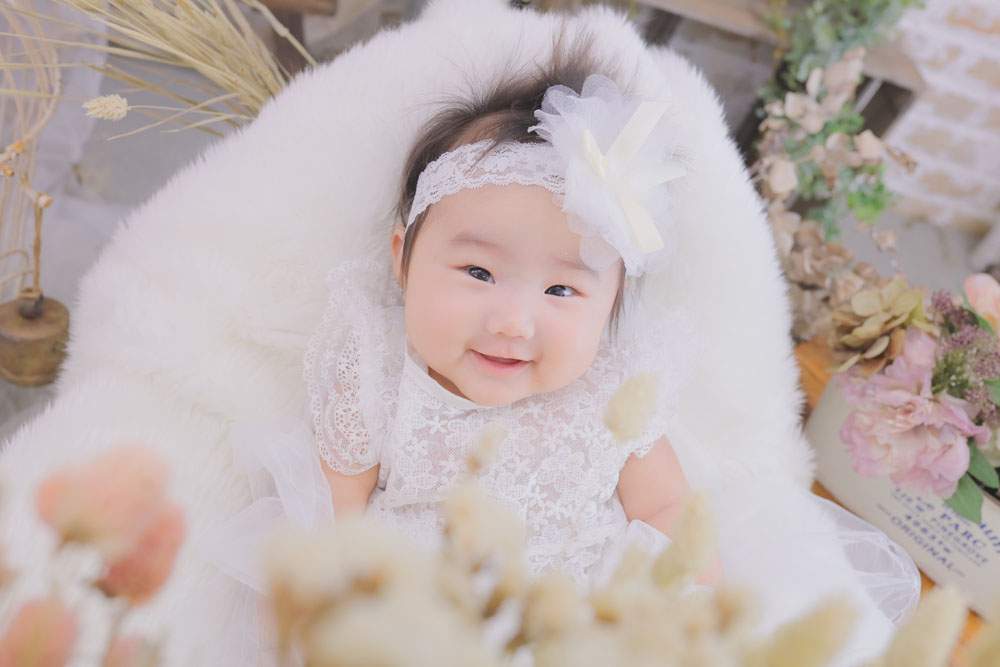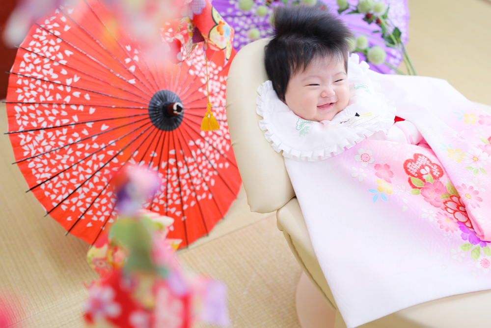 こんにちは!大濠店のひーです♪ 本日最後のご紹介は百日記念でお越しのほのはちゃんです お持込みのドレスとお店のお衣装での撮影でした! お着物は苦手…