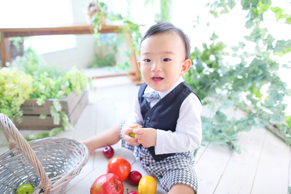 こんにちは!大濠店のひらです♪ 本日最初のご紹介は1歳誕生記念でお越しの男の子です🌟 お持込みとお店のお衣装での撮影でした!! お店に着く直前でお…