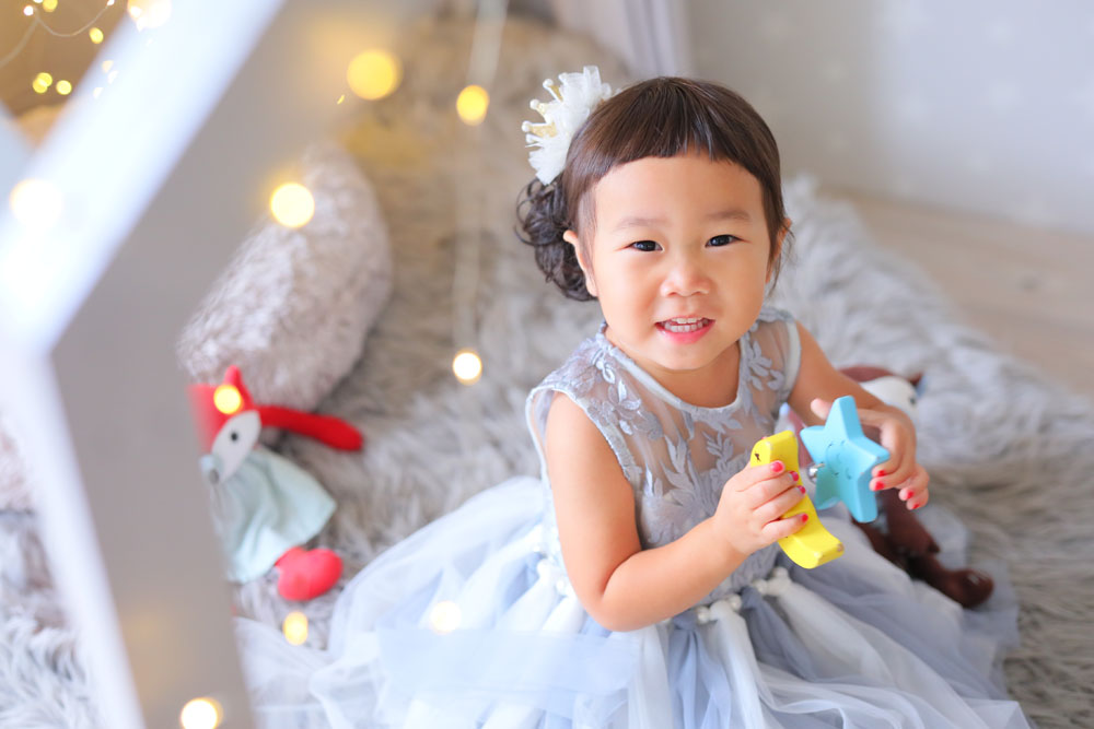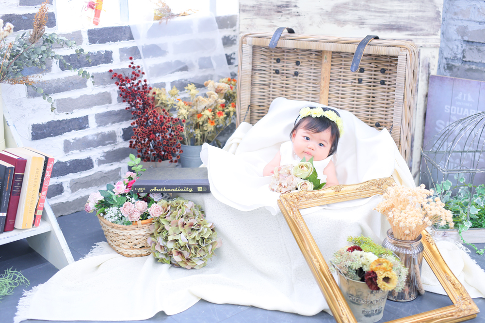 こんにちは!大濠店のひらです♪ 本日最初のご紹介はハーフバースデー記念でお越しのりこちゃんです🌸 お姉ちゃんのこはるちゃんとお揃いのワンピースを着て来て…