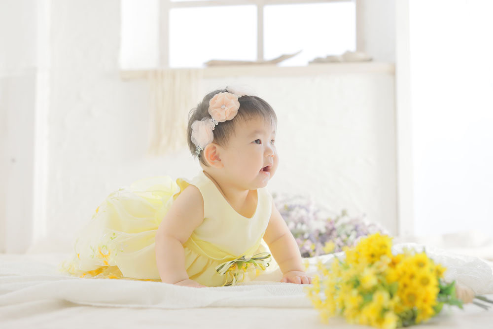 こんにちは!大濠店のひらです♪ 本日最初のご紹介は1歳誕生記念でお越しのゆきなちゃんです🌸 お店に着くまでお昼寝していたゆきなちゃん^^ 撮影が始…