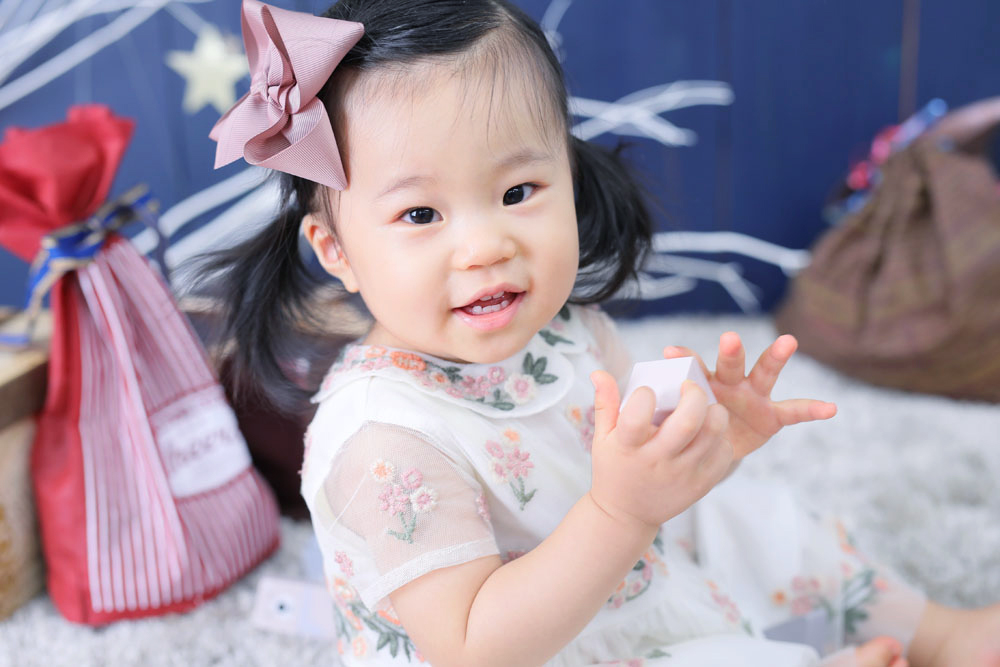 こんにちは! 箱崎A店のあーです♪ 本日、最後のご紹介は1歳お誕生日記念の女の子です☆彡 お衣装がとってもお似合いだった女の子!! ちょっぴり苦…