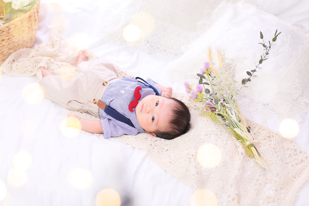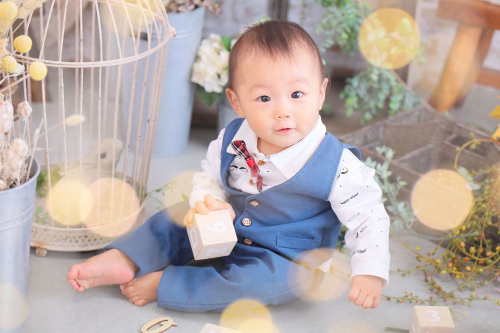 こんにちは!七隈店のけいです♪ 本日、最初のご紹介はお宮参り記念のだいちくんです🌟 カメラ目線上手なだいちくん^^ 最後までモデルさん頑張りました…
