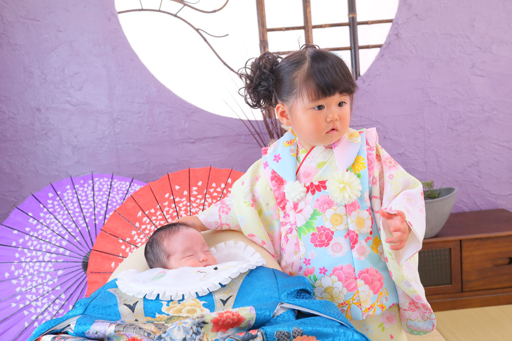 こんにちは! 箱崎A店のあーです♪ 続いてのご紹介は3歳七五三記念のさくらちゃんと お宮参り記念のあおいくんです☆彡 お着物がお似合いだったさく…